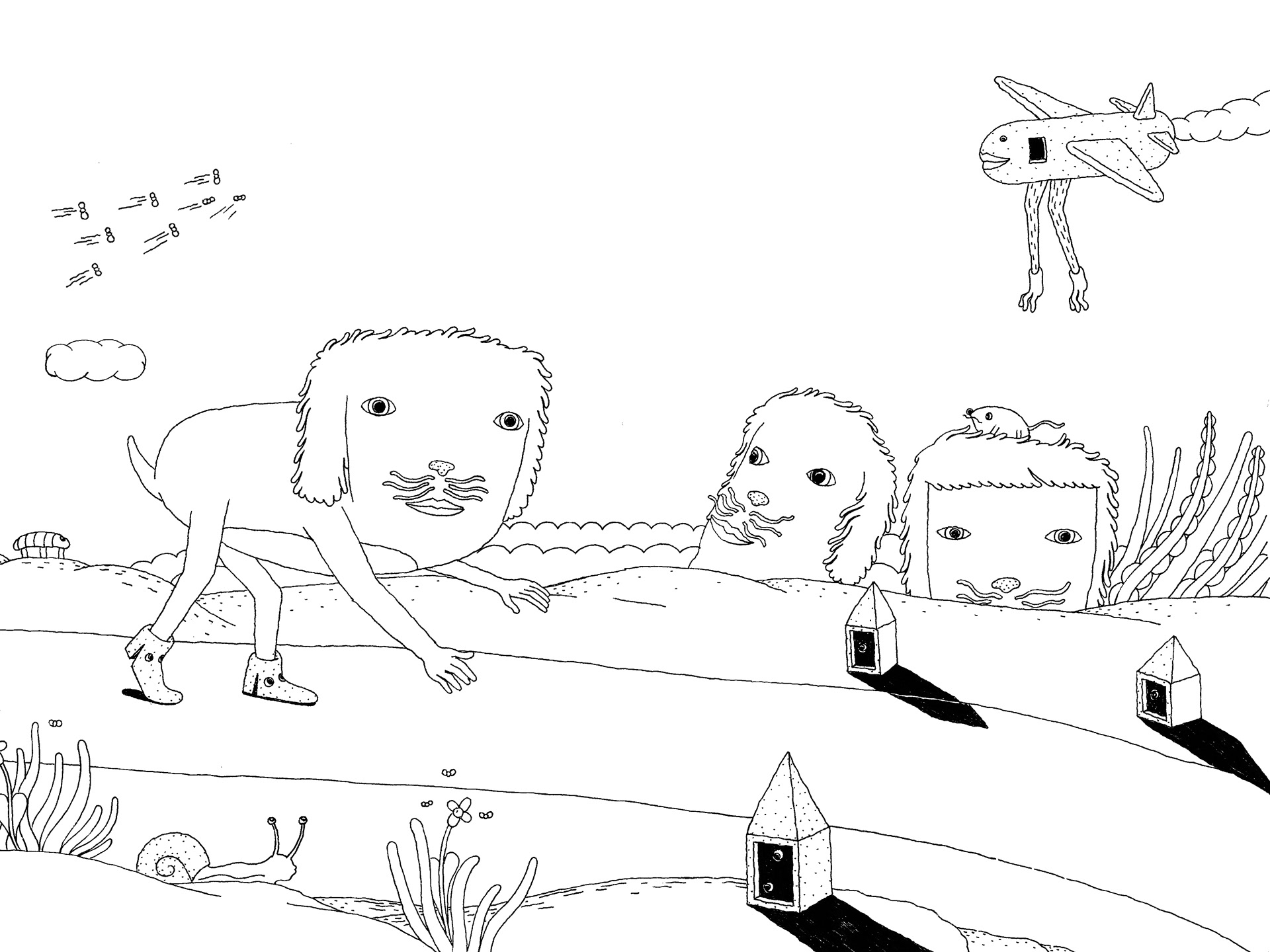 Illustrationen zu „Forschungen eines Hundes“, von Franz Kafka, Tusche auf Papier, digitale Koloration, 16 x 24 cm Illustrations to "Investigations of a Dog", by Franz Kafka, Ink on paper, digital coloration, 16 x 24 cm