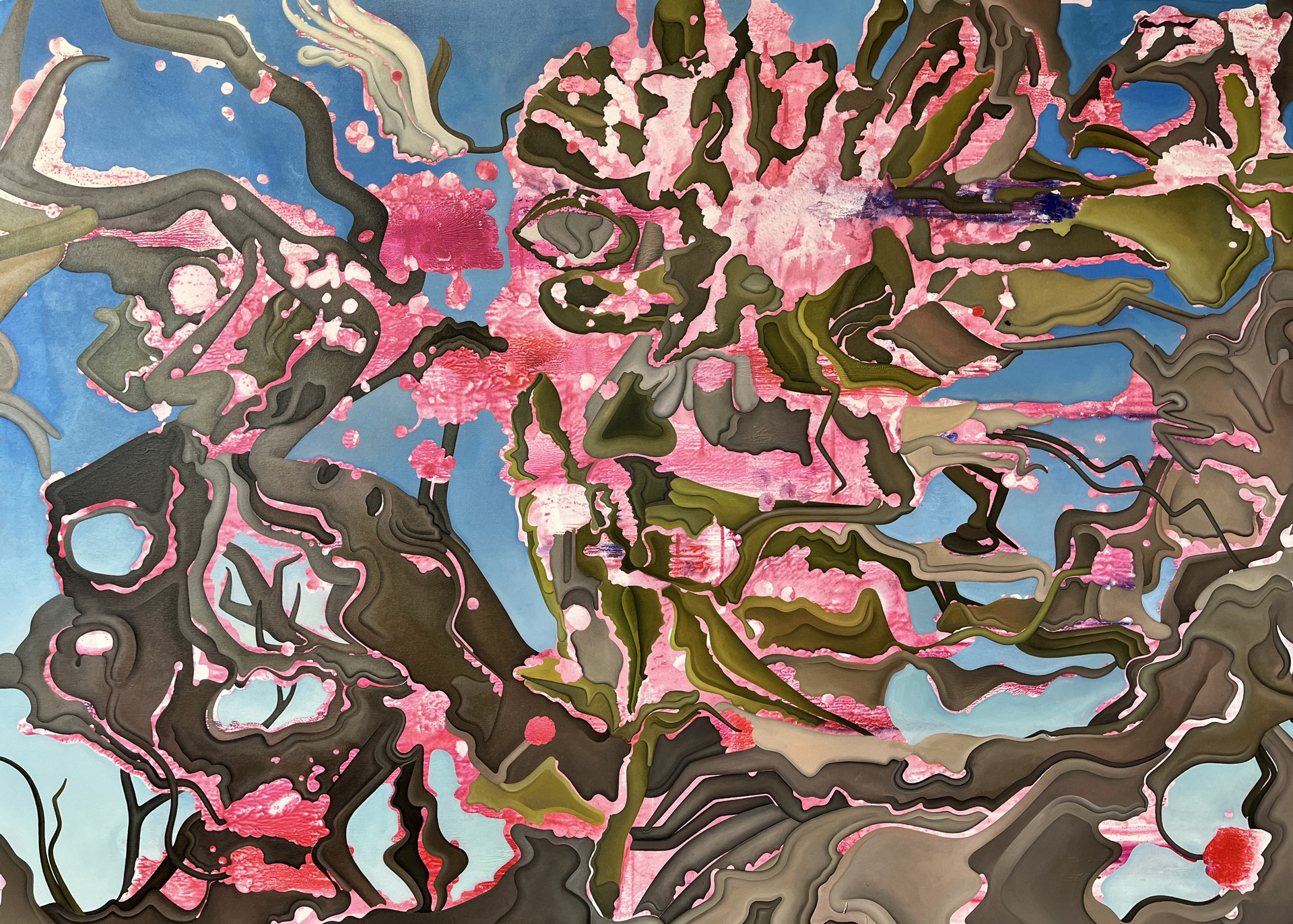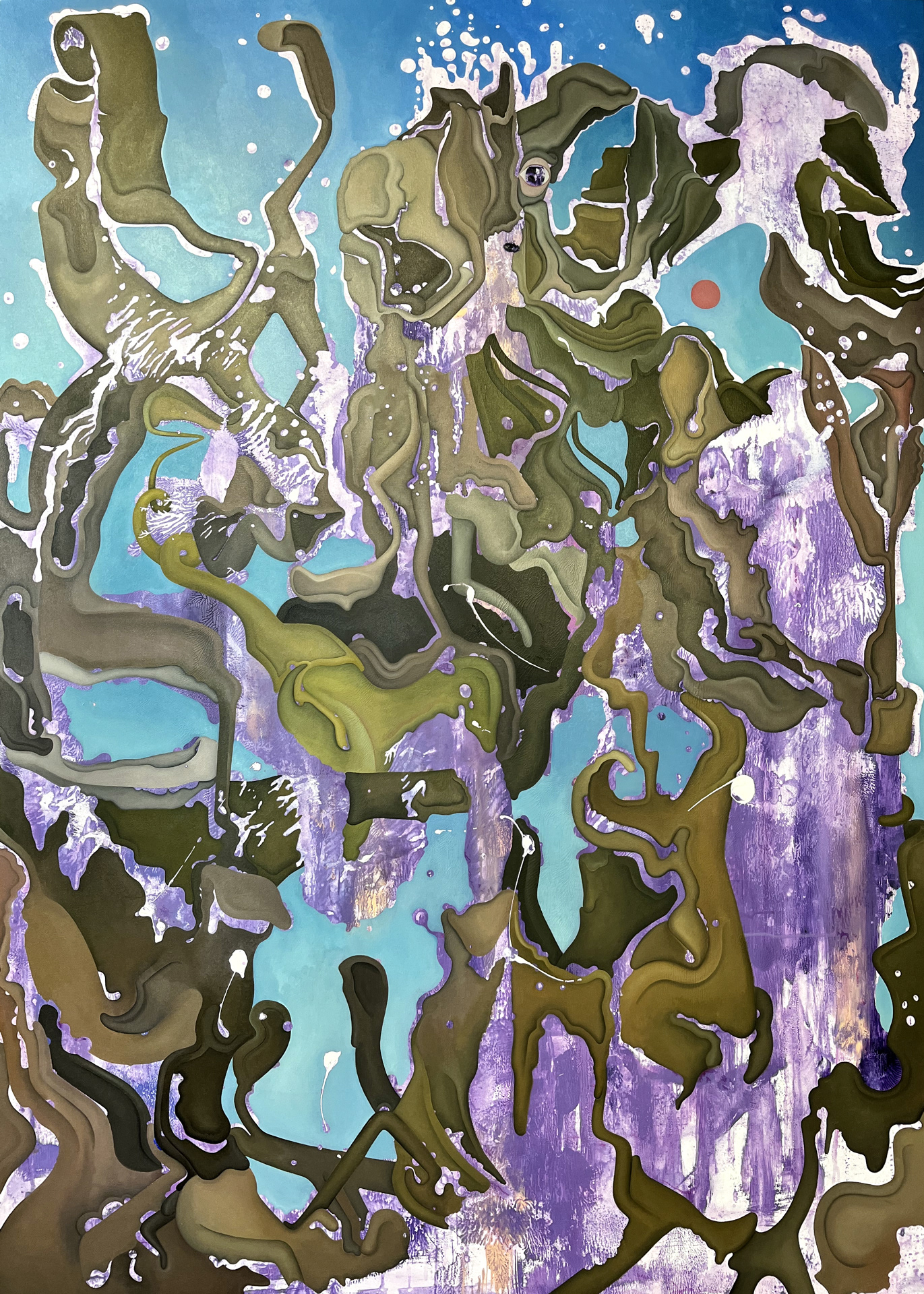 ๐๐ฐ๐ต๐ข๐ฏ๐ช๐ค๐ข๐ญ ๐ฅ๐ณ๐ฆ๐ข๐ฎ๐ด๐ค๐ข๐ฑ๐ฆ,ย acrylicย and oil on canvas on wood, 70 x 100 cm, 2023/2024ย -ย SOLD